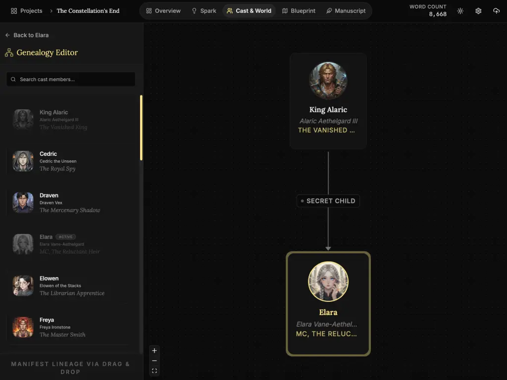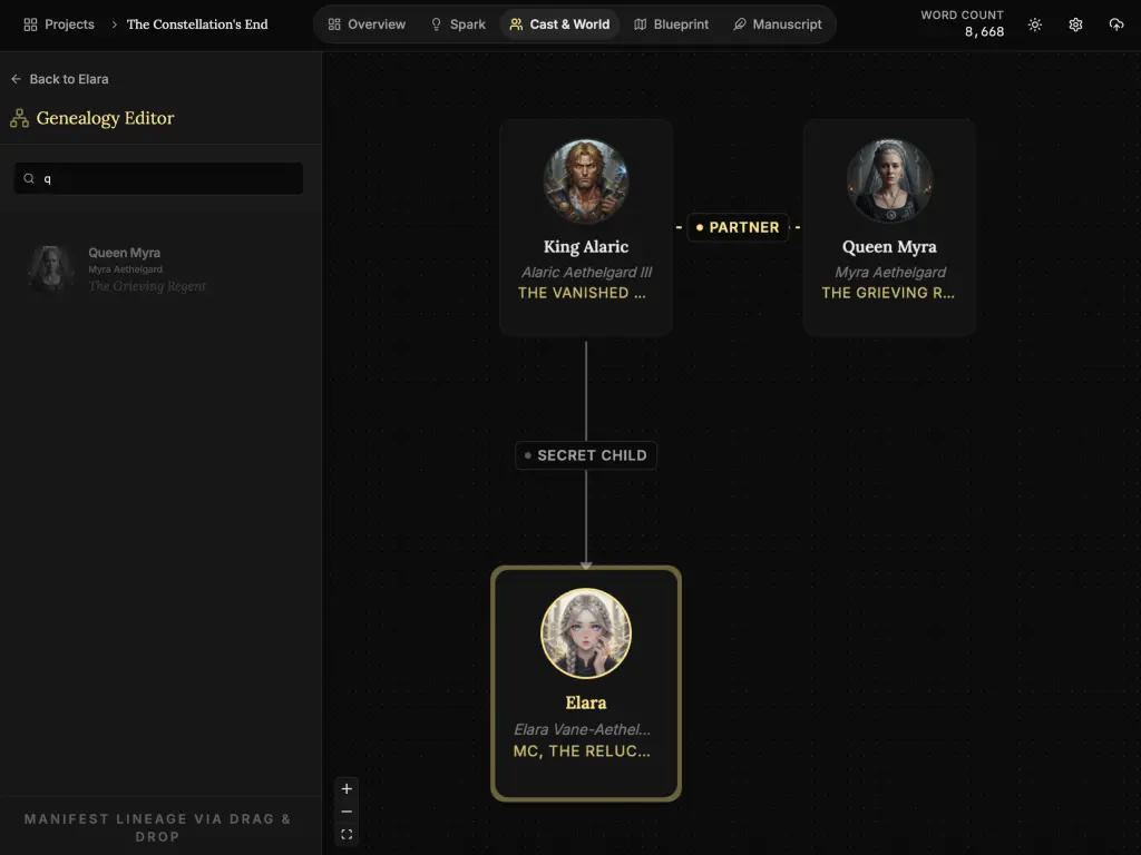 General word processors are terrible at specialized lore. NovelOS gives you a professional database for your multiverse, from magical rules to family trees.